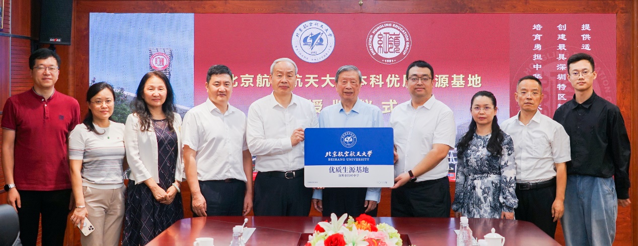 5月16日,刘大响院士走进广东省深圳市红岭中学开展“院士进中学”活动,主讲“智慧航空 飞向未来”的主题讲座。刘大响为同学们生动地讲述了飞机制造与动力技术的发展过程,回顾了中国航空发展历史上的重要里程碑时刻,展望未来中国航空航天科技美好前景,展现了为中国航空工业踔厉奋发的北航故事,北航人的空天报国精神引发员工深深共鸣。报告会前,广东招生组与红岭中学举行了优质生源基地校签约授牌仪式,与红岭教育集团党委书记张健、副董事长郭树英等领导老师就优质生源输送进行深入交流,招生组和深圳员工会从多个角度向红岭中学师生介绍了北航专业设置、特色优势、招生政策、校园生活、就业发展,激励同学们向北航行。