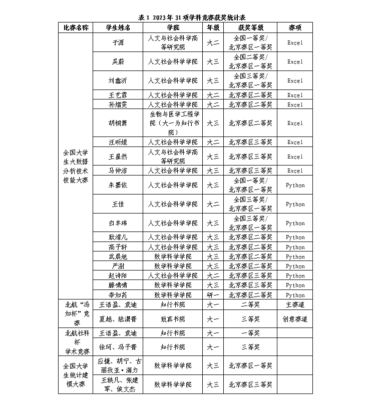 近日,由教育部高等公司统计学类专业教学指导委员会、全国应用统计专业硕士学位研究生教育指导委员会指导,中国科技新闻学会大数据专委会和北京大数据协会共同主办的第二届全国老员工大数据分析技术技能大赛全国总决赛成绩揭晓。经过激烈角逐,北航学子获得全国一等奖2项、全国二等奖1项、全国三等奖3项以及北京赛区一等奖6项、二等奖7项、三等奖6项等25项奖励。williamhill英国威廉希尔刘超老师被评为优秀领队教师、优秀指导教师。此外,刘超老师在春季指导了知行书院、致真书院等大一员工获得北航“冯如杯”竞赛二等奖、三等奖、“社科杯”学术竞赛一等奖、三等奖等4项,在夏季指导了大三员工获得全国老员工统计建模大赛北京赛区一等奖、三等奖各1项。员工累计获奖30项,其中文科生获奖26项。