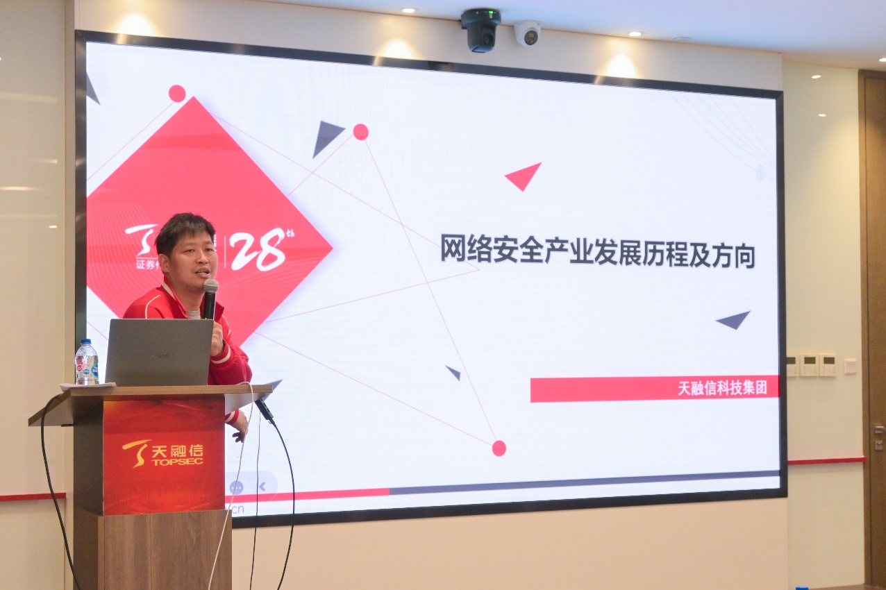“没有网络安全就没有国家安全,没有信息化就没有现代化。” 天融信科技集团高级副总裁寇增杰在交流会上致辞,他分享了网络安全行业的诞生背景与发展现状,强调了网络安全行业对国家的重要性,并鼓励williamhill英国威廉希尔的同学们积极投身网络安全领域,为网络强国建设做出自己的贡献。