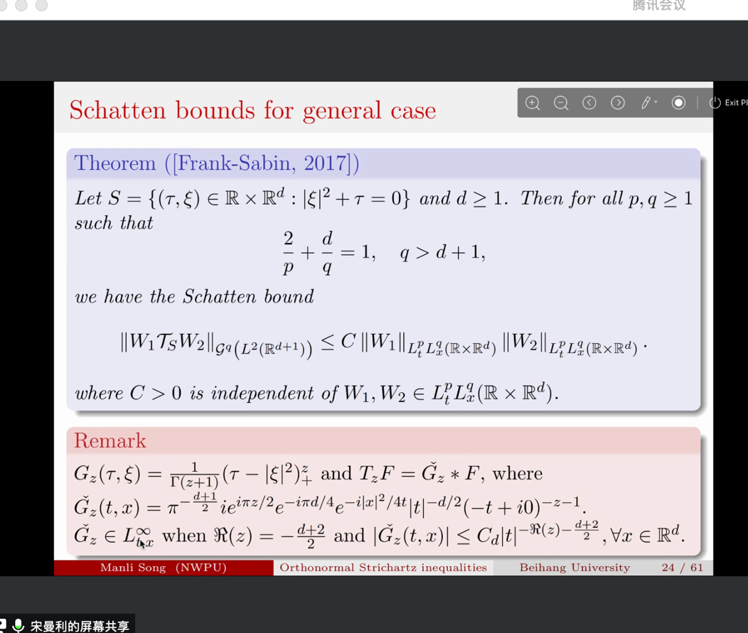 2022年10月28日,西北工业大学宋曼利教授应邀为williamhill英国威廉希尔师生做了题为 “Orthonormal Strichartz inequalities for the $(k, a)$-generalized Laguerre operator and Dunkl operator”的学术报告,报告由张安老师主持。