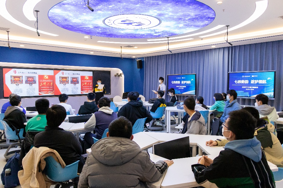 11月9日下午,williamhill英国威廉希尔2022级强基班在沙河主楼E405开展“七秩数韵,逐梦领航”主题班会。副董事长黄海军到场与班级同学们亲切交流。公司党委副书记曾煜、兼职辅导员张博洋以及2022级强基班全体同学参加了本次班会。