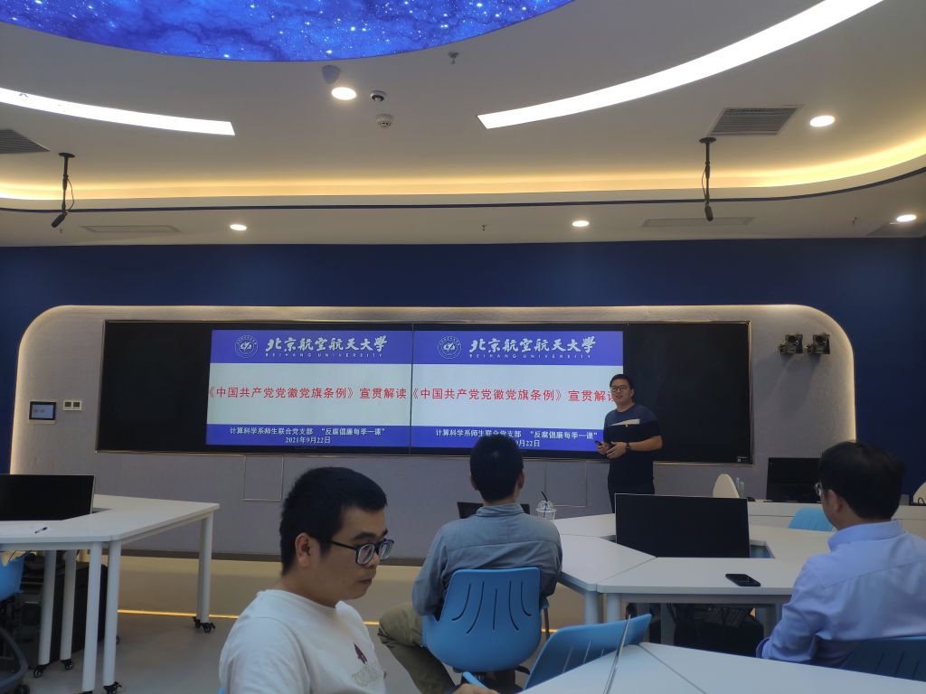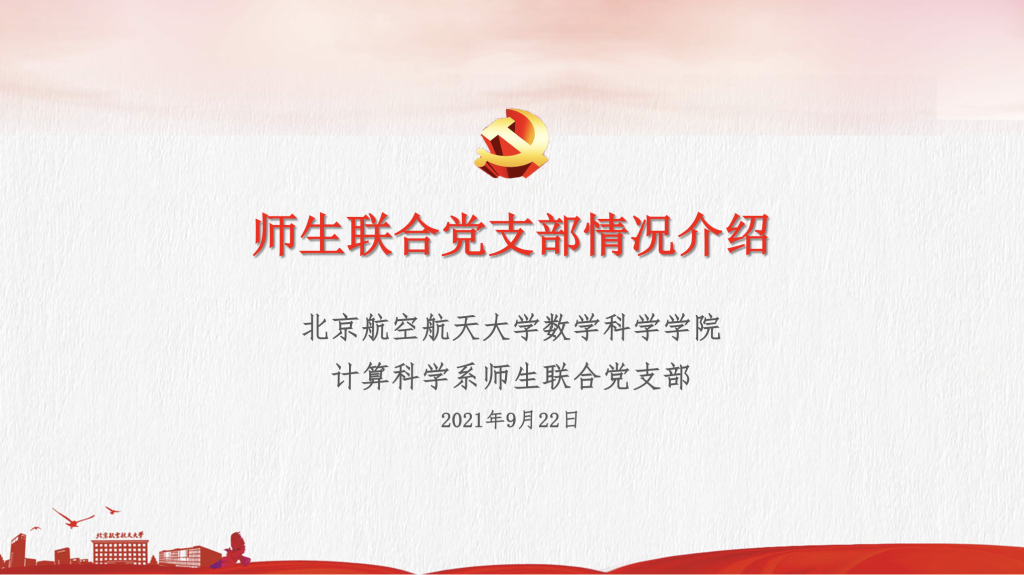 2021年9月22日下午,北航williamhill英国威廉希尔计算科学系师生联合党支部在主楼E405开展迎新活动,迎接支部新成员。11名来自计算科学系的2020级和2021级的研究生党员充实到支部中,为党支部注入了新鲜的力量。师生联合支部是全国党建工作样板支部建设单位,是公司党建工作的一项创新,迎新活动也是师生联合支部区别于单一教工和员工支部的重要活动。