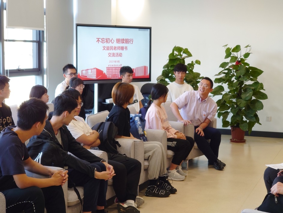 9月22日,原北航第一基础课部高等数学教研室离休教师文益民老先生与公司师生开展“不忘初心,继续前进”主题交流座谈会,文老师在座谈会上讲述了自己参加革命、坚守教研岗位、一心向党的故事,并向与会员工代表赠予了自己的文集《不忘初心 继续前进》,以此勉励同学们爱党爱国,传承革命精神,做空天报国的北航人。数学公司党委书记袁星老师和公司本科生代表25人参加了此次活动,活动由公司党委副书记曾煜老师主持。