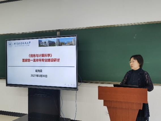 2021年信息与计算科学国家级一流专业建设研讨会于8月30日在沙河校区召开,校教务处赵海云副处长、公司领导班子成员和计算科学系全体教师参加会议。会议由专业负责人刘铁钢教授主持。