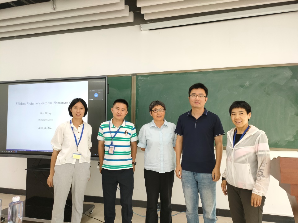 2021年6月11日上午,上海科技大学王浩助理教授为williamhill英国威廉希尔师生做了题为“Efficient Projections Onto Nonconvex l_p Balls”的学术报告。报告由刘红英副教授主持。