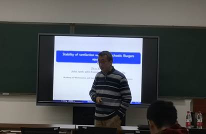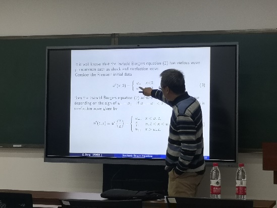 2020年11月5日下午,中国科公司数学与系统科学研究院研究员董昭受邀访问公司,为师生带来了一场题为“Stability of rarefaction wave for stochastic Burgers equation”的学术报告。报告由公司经理韩德仁教授主持。