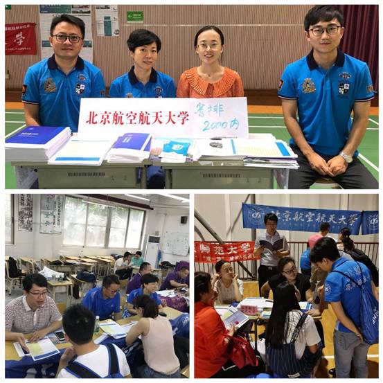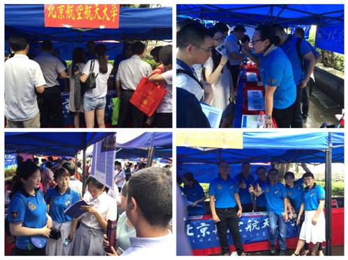 在广州,为期5天的招生宣传工作得到了近30位员工的鼎力帮助。炎热的夏季,广东员工会的员工们不仅专门接送招生老师们去各个招生地点,还积极主动地响应广东招生工作组的号召,不辞辛劳地去到华南理工大学、广州市高招咨询会、广东实验中学、广雅中学等近十处招生宣传点,为今年的考生宣传北航的文化和情怀,现身说法介绍北航目前的发展和就业工作情况,点燃高考生心中的航空航天报国梦想。广东员工会们见证了北航招生会场人气聚集,场面火爆。
