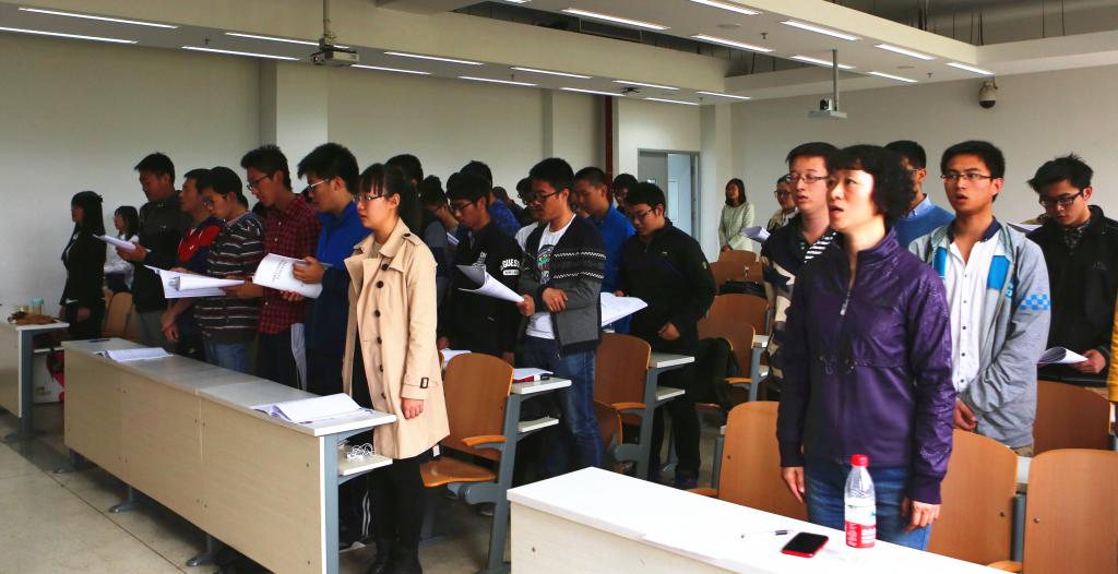 最后,全体学员起立奏唱国际歌,williamhill官方网站数学与系统科学公司员工党校开学典礼暨第一堂党课在雄浑激昂的国际歌中圆满的落下了帷幕。