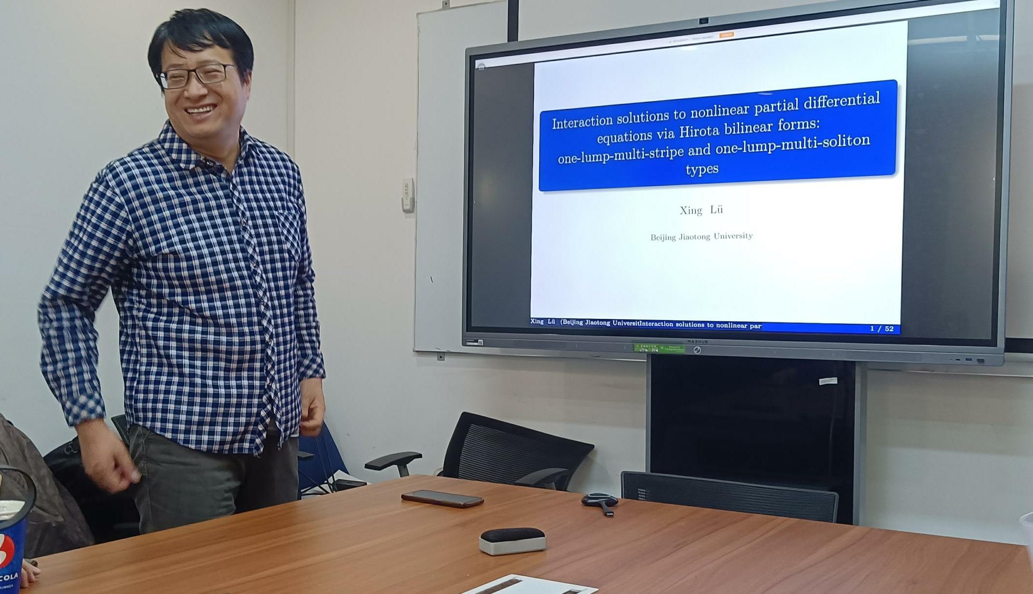 11月15日,北京交通大学数学与统计公司吕兴教授,受邀为应用数学系师生进行了“Interaction solutions to nonlinear partial differential equations via Hirota bilinear forms: one-lump-multi-stripe and one-lump-multi-soliton types”的学术报告。 报告在E602举行,由魏光美老师邀请,李翠萍老师主持,相关研究领域的师生参加了本场报告。