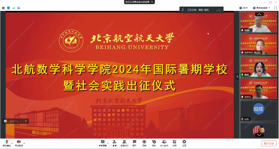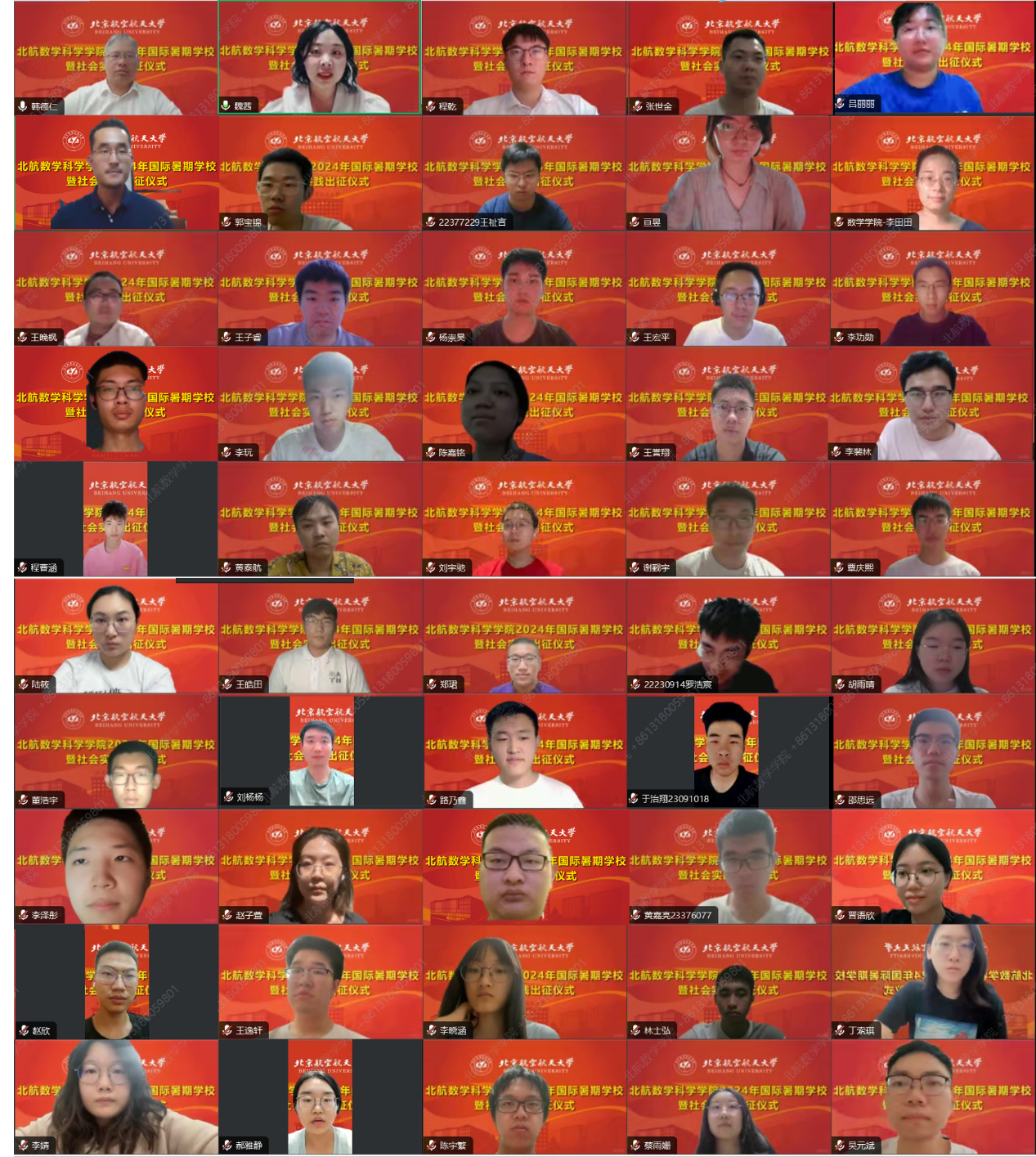 7月19日晚,williamhill英国威廉希尔2024年国际暑期公司暨社会实践出征仪式于线上会议平台进行。公司经理韩德仁、党委副书记魏茜,暑期公司带队教师代表张世金、李田田、陆筱,社会实践队指导教师代表程乾,国际暑期公司和社会实践队员工代表等近60人参加仪式。本次出征仪式由魏茜主持。
