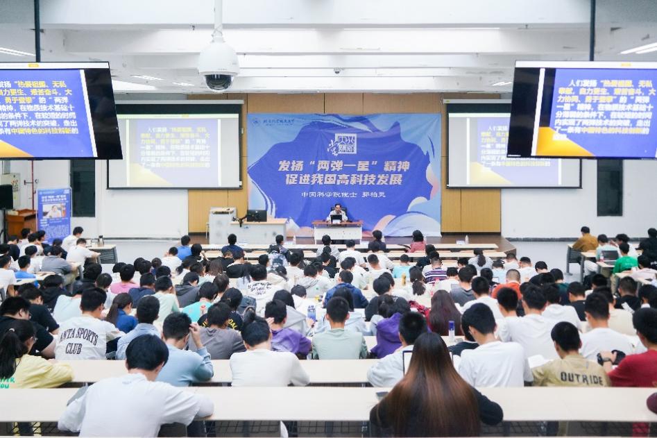 郭柏灵院士深刻阐释了“热爱祖国、无私奉献,自力更生、艰苦奋斗,团结协作、勇于攀登”的“两弹一星”精神,增进了同学们对新中国科技史的了解。郭柏灵院士勉励同学们,要传承发扬以爱国主义为底色的科学家精神,在学习科研道路上保持创新精神和探索勇气,将个人理想与国家需求紧密结合,以实际行动践行科学报国的崇高使命。