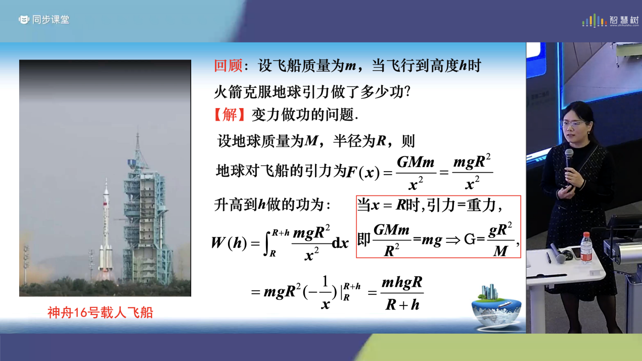 “探测器摆脱地球引力做多少功?多大的初速度能使其摆脱地球引力?”课程伊始,贺慧霞老师以神州十六号载人飞船和嫦娥6号探测器发射为切入点,探讨航天器发射中的物理问题及其与数学分析的联系,通过提问引导员工从定积分向无穷区间上的广义积分拓展,自然引出无穷积分的概念。此外,贺慧霞老师借助全景教学空间板书推演与动态图示,对比了暇积分与无穷积分的关系。